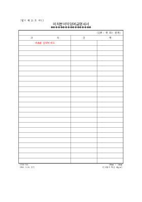미처분이익잉여금명세서 〔별지 제 ○ 호 서식〕 미처분이익잉여금명세서 (단위 : 원 또는 천원) 과 목 금 액 내용을 입력하세요. ○ ○A ○. ○. ○. 승인 ○㎜ × ○㎜ (인쇄용지 특급 ○g/㎡)
