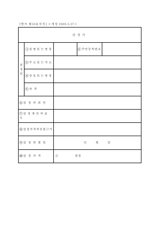 감정서 [국세징수법 시행규칙 서식50] 서식 무료 다운로드