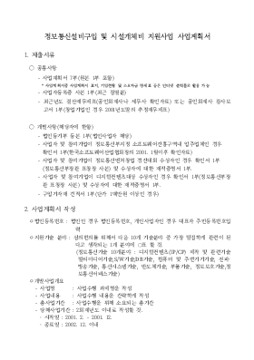 2001년 1차 정보화촉진기금 대출 사업계획서 서식 및 양식 무료 다운로드