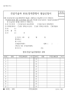 건설기술자 보유-경력증명서 발급신청서 서식 무료 다운로드