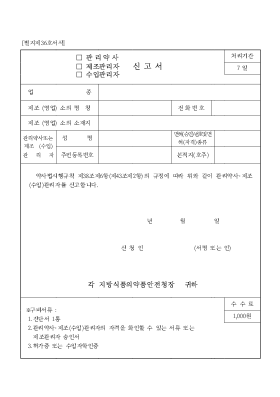 (관리 약사, 제조 관리자, 수입 관리자) 신고서 서식 무료 다운로드