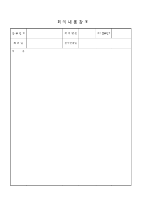 회의 내용 참조 문서는 한글(HWP) 형식으로 제공되어, 바로 다운로드하여 편리하게 사용할 수 있습니다. 필요한 서식을 빠르게 찾고 이용해보세요.