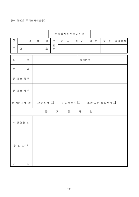 이 문서는 등기 절차 및 행정기관에 제출할 때 사용되는 공식 등기 서식입니다.