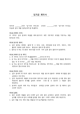 - 임가공 서비스를 제공하는 계약에 대해 구체적인 조건을 규명하는 문서로, 생산 및 납품 조건, 비용 등을 명확히 합니다.