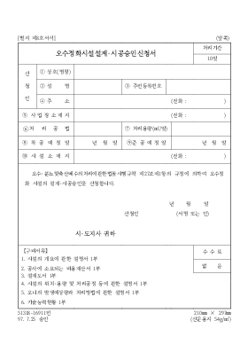 오수 정화시설 설계 시공 승인 신청서 서식 무료 다운로드