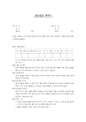 - 의류 제조업체와 유통업체 간에 제품 납품 조건을 명확히 하기 위해 체결되는 계약서로, 주로 도매 또는 납품 거래 시 사용됩니다.