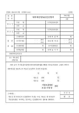 대부 재산 양도 승인 신청서 양식 무료 다운로드