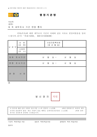 세무조사 기간 연장 통지 [국세기본법 시행규칙 서식55의3] 서식 무료 다운로드