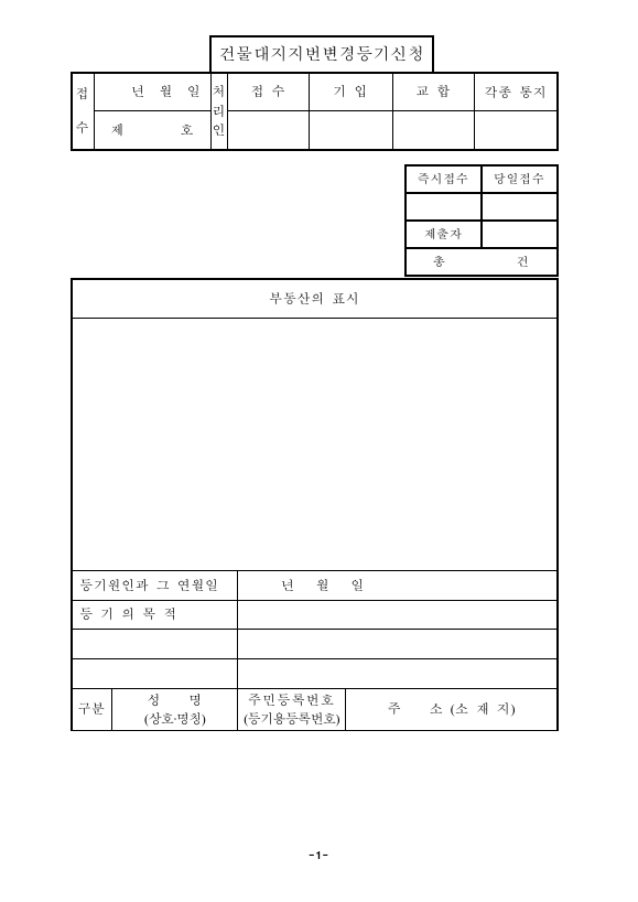 건물 대지 지번 변경 등기 신청 서식 무료 다운로드