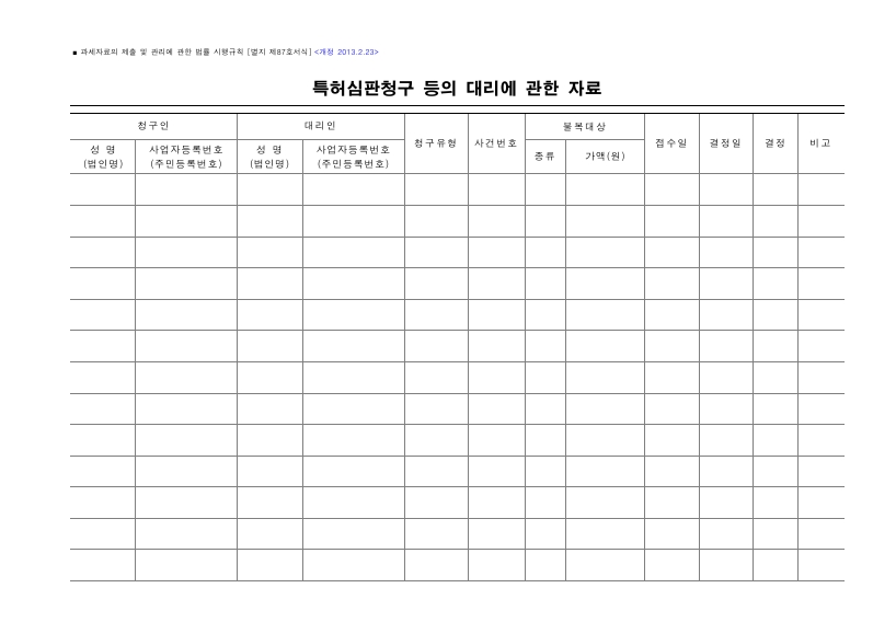 특허심판청구 등의 대리에 관한 자료 [과세자료의 제출 및 관리에 관한 법률 시행규칙 서식87] 서식 무료 다운로드