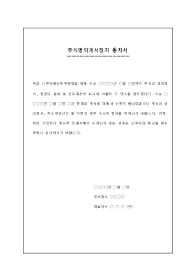 주식 명의 개서 정지 통지서 서식 무료 다운로드