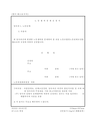 노동쟁의 중재 신청서 양식 무료 다운로드