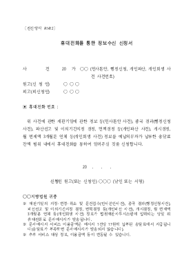 휴대전화를 통한 정보수신신청서(A1412) 양식 무료 다운로드