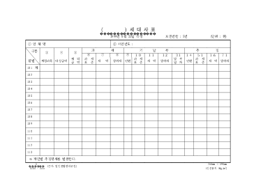 ( )세대사표 ( ) 세 대 사 표 ○년 ○월 ○일 작성 보존년한 : ○년 (단위 : 원) ① 업 체 명 ② 사업년도 : 구분 월별 ③ ④ ⑤ 과 세 기 납 부 추 징 ⑥ ⑦ ⑧ ⑨ (○) (') (○) ()) (○) (+) (○) ( ) 계정과목 대상금액 제 외 금 액 과 세 표 준 세 액 방위세 인원 과 세 표 준 세 액 방위세 납 부 일 자 인원 과 세 표 준 세 액 방위세 ○ 계 ○ ○ ○ ○ ○ ○ ○ ○ ○ ○ ○ ○ ※ 개인별 추징명세를 별첨한다. ○ ────── (근거: 법인종합관리규정) ○ ○Ao ○㎜ × ○㎜ (신문용지 ○g/㎡)