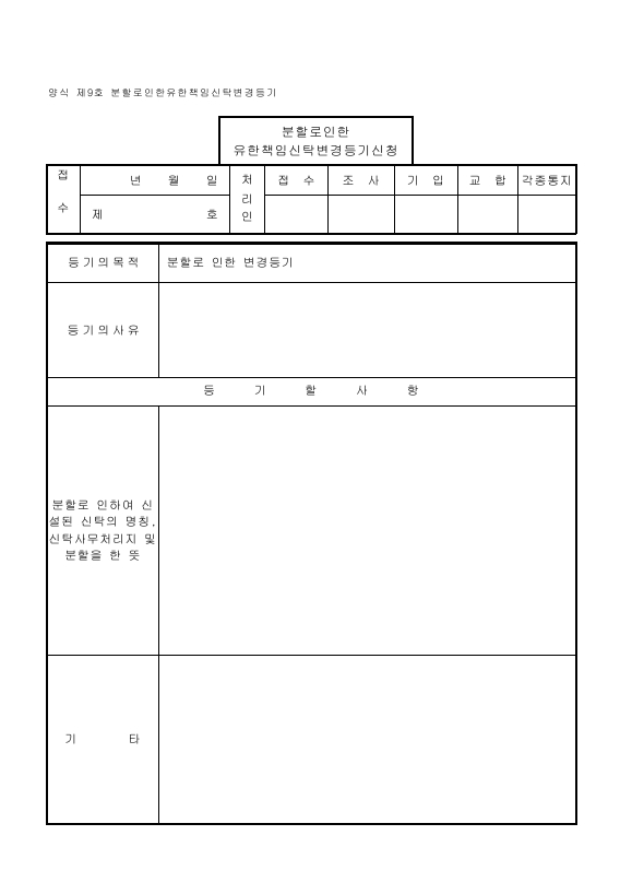 유한책임신탁-09. 분할로 인한 유한책임신탁 변경 등기 서식 무료 다운로드