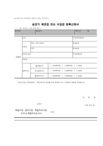승강기 제조업 또는 수입업의 등록 서식 무료 다운로드