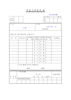 부양 가족 변경원 문서는 한글(HWP) 형식으로 제공되어, 바로 다운로드하여 편리하게 사용할 수 있습니다. 필요한 서식을 빠르게 찾고 이용해보세요.