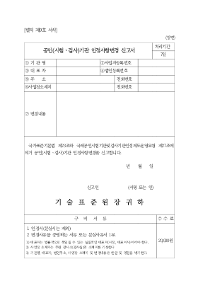 공인(시험,검사)기관 인정사항변경 신고서 양식 무료 다운로드