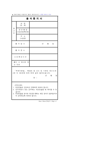 출석통지서 [국세기본법 시행규칙 서식27] 서식 무료 다운로드